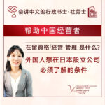 您好,我是日本行政书士·劳务士的大西祐子。 外国人在日本设立公司,并从事公司的经营或管理工作时,必须取得在留資格「経営・管理」。取得该签证后,可以在日本合法开展贸易业、服务业、餐饮业等多种事业活动。 可以从事哪些活动? […] - 外国人経営者必読|為什么在日本不能馬上解雇員工?
