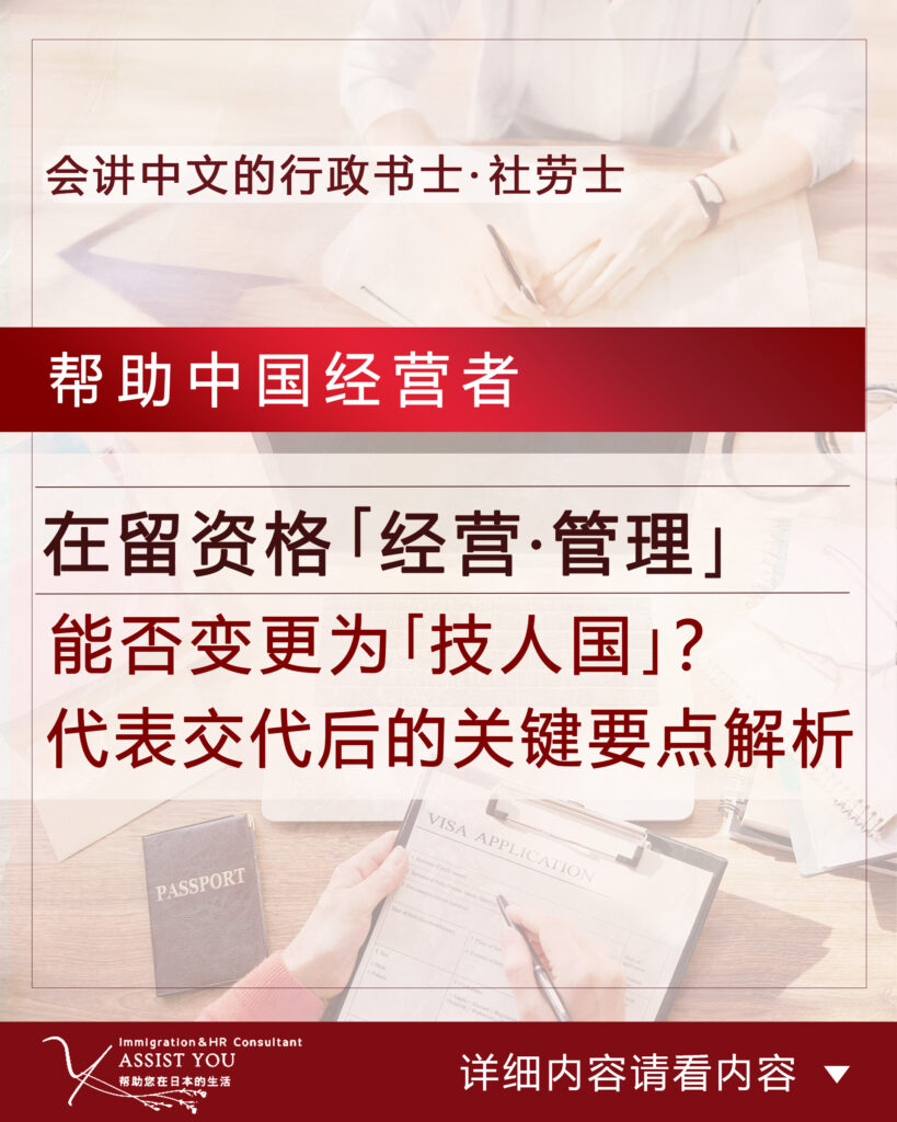 在留资格「经营·管理」能否变更为「技人国」?代表交代后的关键要点解析