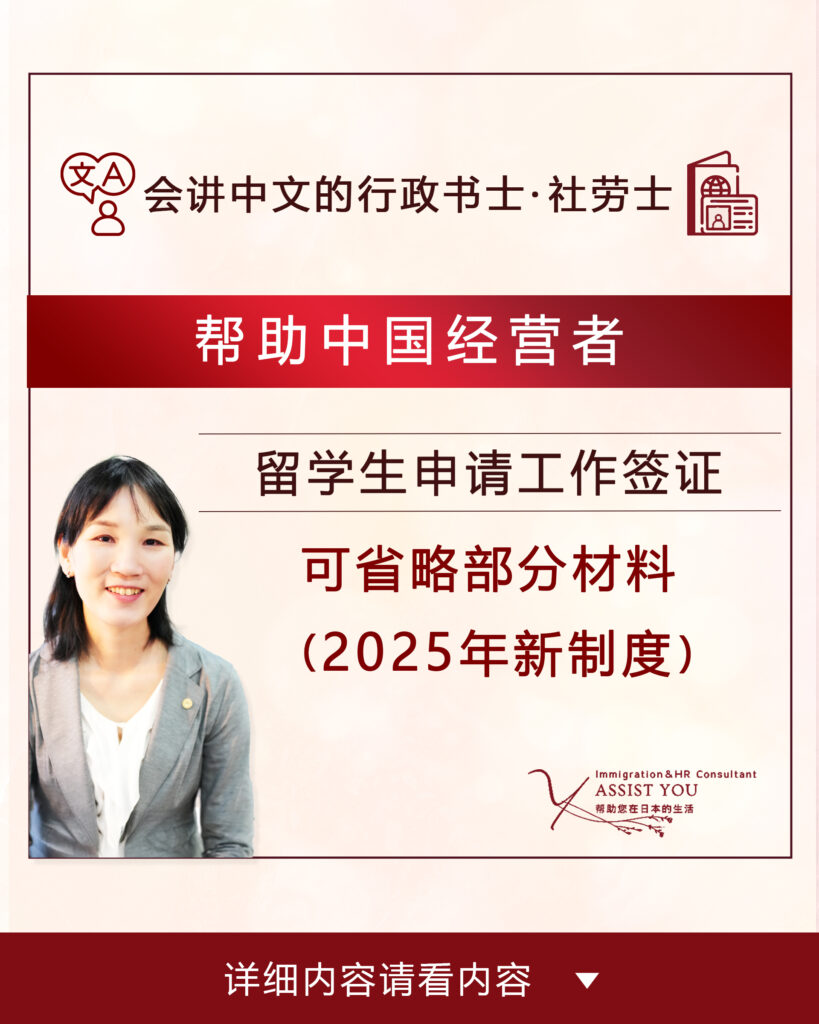 自2025年12月1日起,原本持有「留学」在留资格的外国留学生,在申请变更为「技术・人文知识・国际业务」或「研究」时,如符合一定条件,将可以省略部分提交材料。