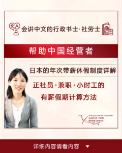 您好,我是日本行政书士·劳务士的大西祐子。年次带薪休假,您真的正确安排了吗?在日本,**年次带薪休假(年次有给休假)**是依据《劳动基准法》规定,必须给予所有劳动者的法定权利。无论行业、国籍、雇佣形式(正式员工、兼职、打 […]