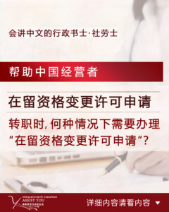您好,我是日本行政书士·劳务士的大西祐子。 “我有工作签证,所以换公司也没问题。”“我的工作属于在留资格允许的范围,所以不需要变更手续。”您会这样想吗? 其实,在某些在留资格中存在 “只能在该公司工作” 的条件。 特别需 […]